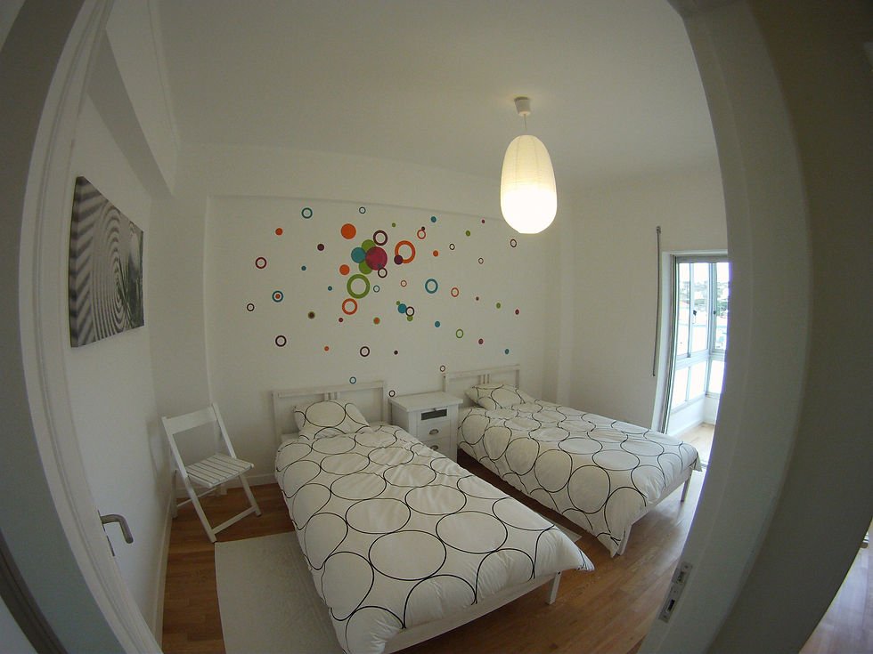 We offer 3 rooms with a nice design. One is a twin and the other two have bulk, but confortable, beds. The apartment has heaters for the winter time.